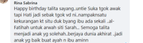 Ucapan Hari Lahir Untuk Talita Buatkan Ramai Tersentuh