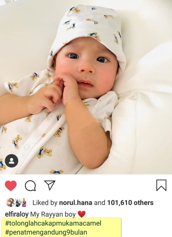 Perkara yang sama terjadi kepada selebriti Elfira Loy. Dia melahirkan anak lelaki pada Oktober yang lalu dan diberi nama Muhammad Rayyan Khalaf. El memuat naik foto anaknya dengan caption seperti cemburu melihat wajah si comel seiras suaminya.
